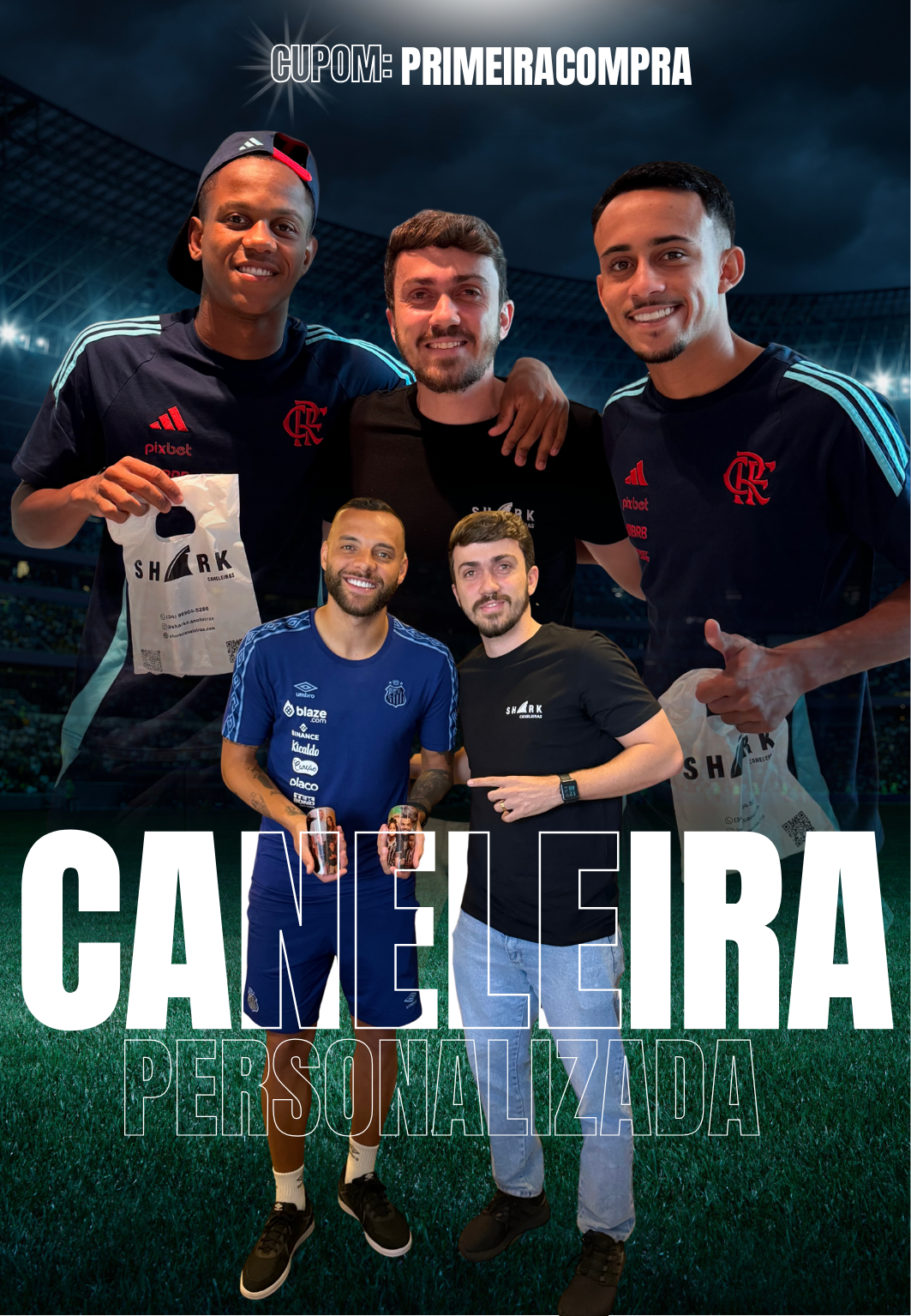 Hoje, temos o orgulho de atender grandes nomes do futebol brasileiro e mundial, como Neymar Jr, Endrick, De Arrascaeta, Varela, Igor Jesus, Felix Torres, Willian Bigode, Giuliano, Pituca, Guilherme, Otero, Kauã Elias, Nenê, Luiz Henrique, Evanilson,Luiz Araújo, Allan, Brenner, Saulo Mineiro, Breno Lopes, Alerrandro, Osvaldo, Nikão, Luiz Adriano, Arthur Gomes, John Kennedy entre outos. Nosso compromisso é oferecer produtos de alta qualidade que não apenas protegem, mas também inspiram nossos clientes a expressar sua individualidade e paixão pelo esporte.